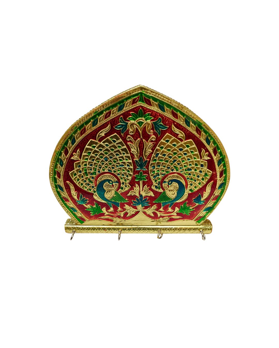 Elevate your home décor with this handcrafted Meenakari key holder, designed with binary peacocks in intricate detailing. The rich combination of red, green, and gold tinges reflects the beauty of traditional Indian wall décor, while its sturdy design keeps your keys organized with elegance. A perfect mix of art and mileage, this peacock crucial stage brings heritage charm to any living space.