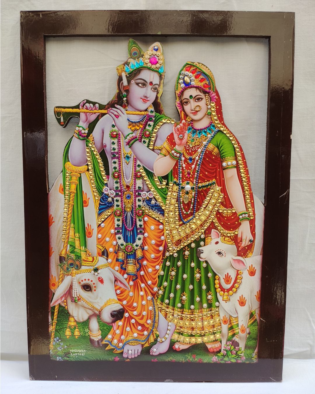 Bring positivity and divine grace into your space with this beautifully crafted Radhe Krishna With Cow Frame. Designed with premium-quality materials, this frame showcases vibrant colors and intricate detailing that enhance the spiritual aura of your home, office, or gifting occasion. Perfect for placing on your wall, desk, or altar, it serves as a constant reminder of peace, protection, and blessings.